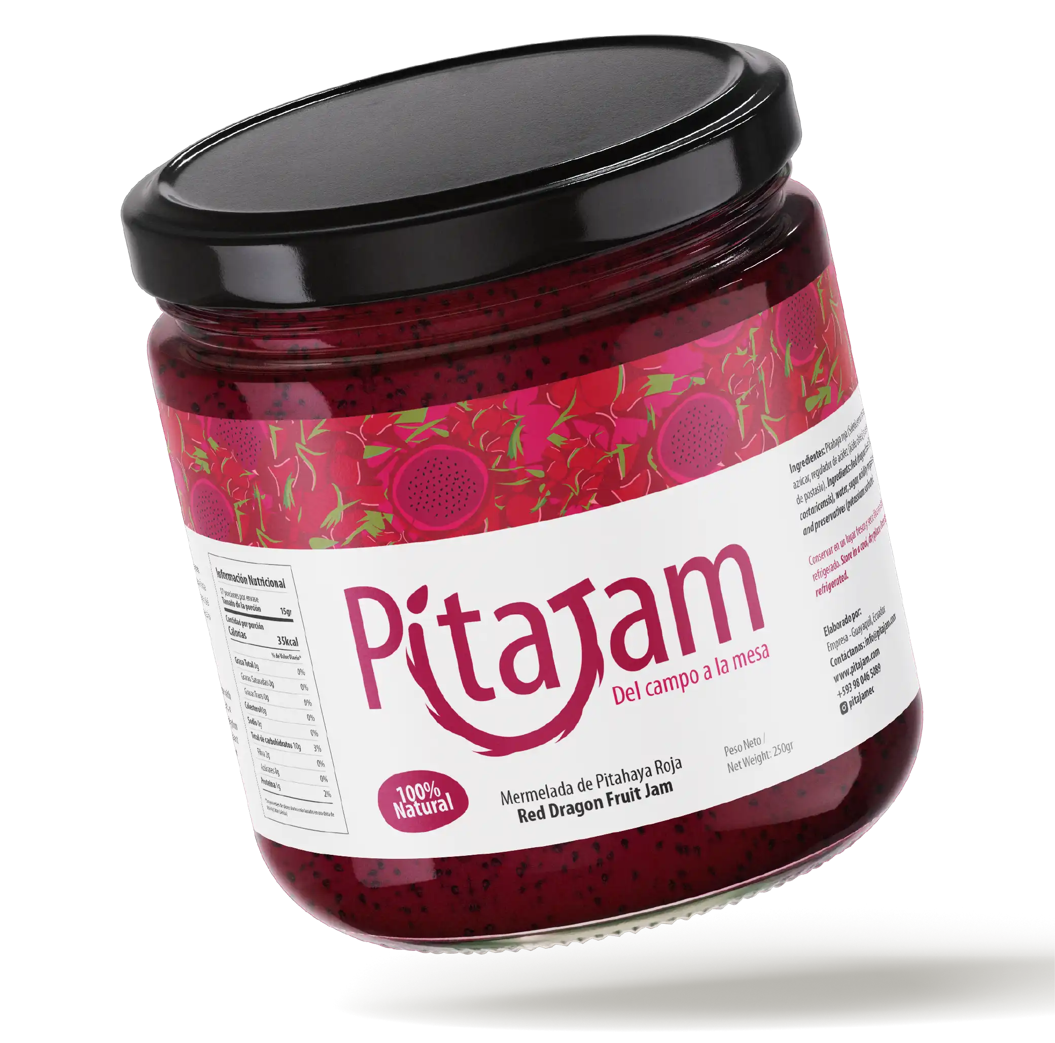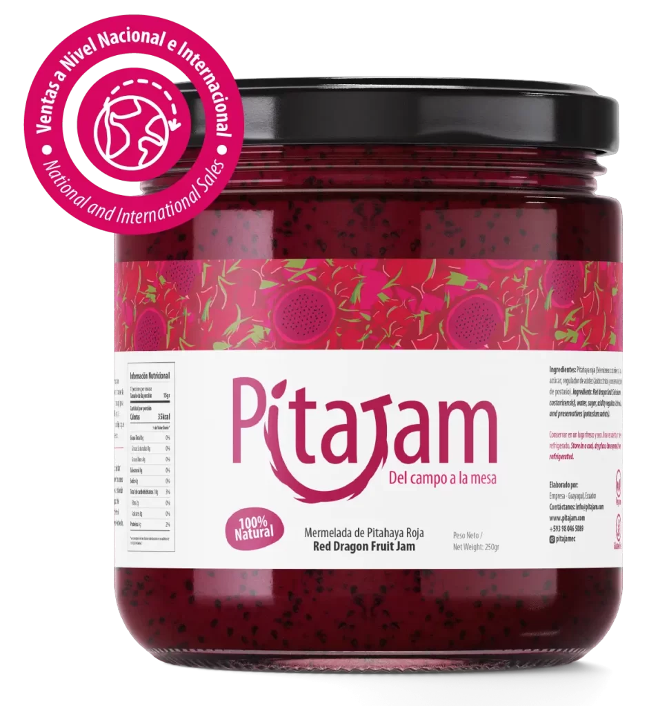 Desde nuestra hacienda en la vía a la Costa, Ecuador, cultivamos con pasión la Pitahaya Roja (Selenicereus Costaricensis), una fruta exótica de color intenso y sabor único. Con ella elaboramos una mermelada natural, sin conservantes artificiales, que conserva toda la esencia de nuestra tierra.